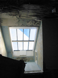 The fireplace on the first floor of the stair hall in 3658. Below looking up at the 3rd floor stair balcony and the open sky above. The Skylight frame had crash landed at the 2nd floor level over the opening to the first floor below. Further account of the impending demolition can be found on the Ecology of Absence Blog.