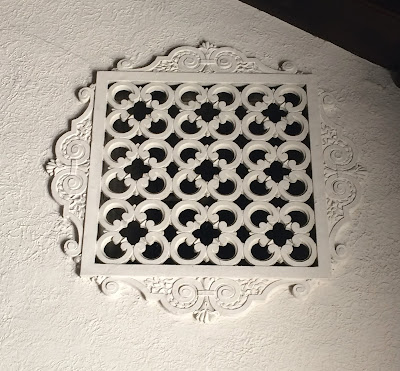 The rear wall of the chapel was composed of decorative plaster grills. Other than the graffiti, the grills are in perfect condition.